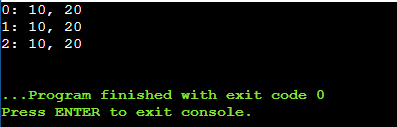 std::cout << "0: "<< aa << ", " << bb << std::endl;