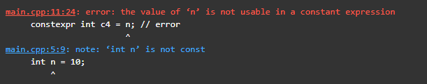 const와 달리 constexpr은 우변에 n을 두었을 때 error가 발생한다.