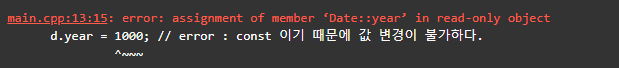 d.year = 1000; 의 주석을 해제하면 아래와 같은 에러가 발생한다.
