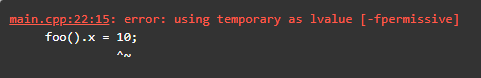 main.cpp:22:15: error: using temporary as lvalue [-fpermissive]