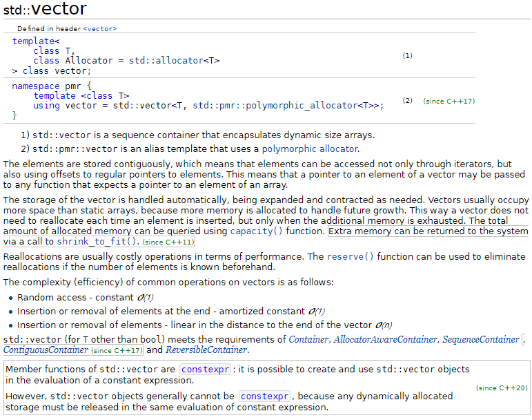 template< class T, class Allocator = std::allocator > class vector; (1) (2) (since C++17) 1) std::vector is a sequence container that encapsulates dynamic size arrays. The elements are stored contiguously, which means that elements can be acces
