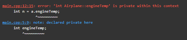 int n = a.engineTemp; // error : private 데이타에 직접 접근이 불가하다!