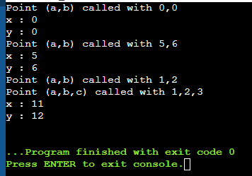 Point p3(1,2,3); 이 호출되었을 때 위임 생성자에 의해 먼저 Point(a,b) 가 실행되고, 그 다음에 Point(a,b,c) 생성자의 내용이 수행되는 것을 확인할 수 있다.