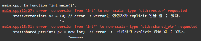 std::vector<int> v2 = 10; // error : vector는 생성자가 explicit 임을 알 수 있다.