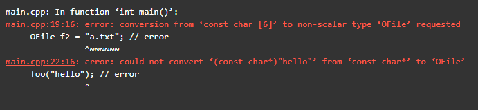main.cpp:22:16: error: could not convert ‘(const char*)"hello"’ from ‘const char*’ to ‘OFile’