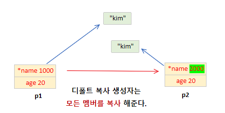 * 디폴트 복사 생성자는 모든 멤버를 복사해 준다.