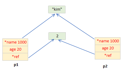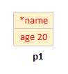 1) Person p1 이 만들어 지면 *name과 age 공간이 생성된다.