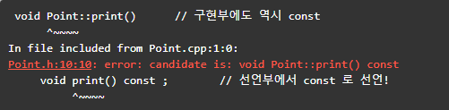void Point::print() 로 구현을 하면 아래와 같은 에러가 발생한다.