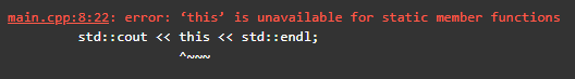 main.cpp:8:22: error: ‘this’ is unavailable for static member functions