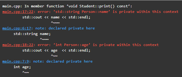 main.cpp:18:22: error: ‘int Person::age’ is private within this context