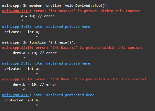main.cpp:22:10: error: ‘int Base::a’ is private within this context