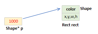 -> Rect 타입을 Shape* 타입으로 암시적 형변환이 일어난다. => upcasting