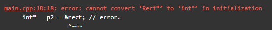 main.cpp:18:18: error: cannot convert ‘Rect*’ to ‘int*’ in initialization