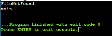 아래와 같이 FileNotFound 를 출력하는 exception 처리가 수행되었다.