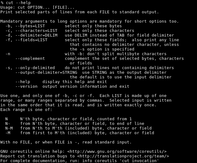 * 모든 답은 help에 있습니다. cut --help 로 확인할 수 있습니다.