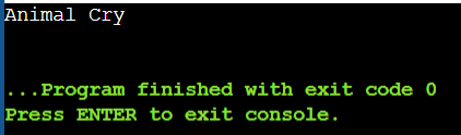 이런 경우 p->Cry();를 호출했을 때 아래의 결과 처럼 Animal Cry가 출력된다.
