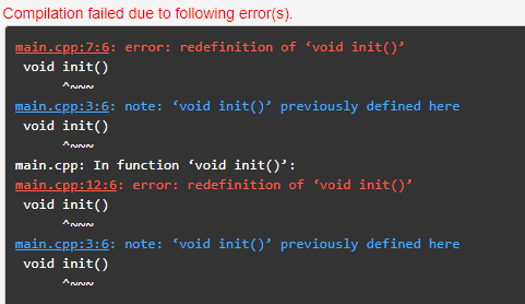 C언어 에서는 여러개의 init() 이 아래와 같이 존재할 때 init() 함수를 구분할 수 없다. (C ++에서도 아래와 같은 코드는 컴파일 에러가 역시 발생한다.) 이를 해결해 줄 수 있는 namespace 개념을 알아두어야 한다.